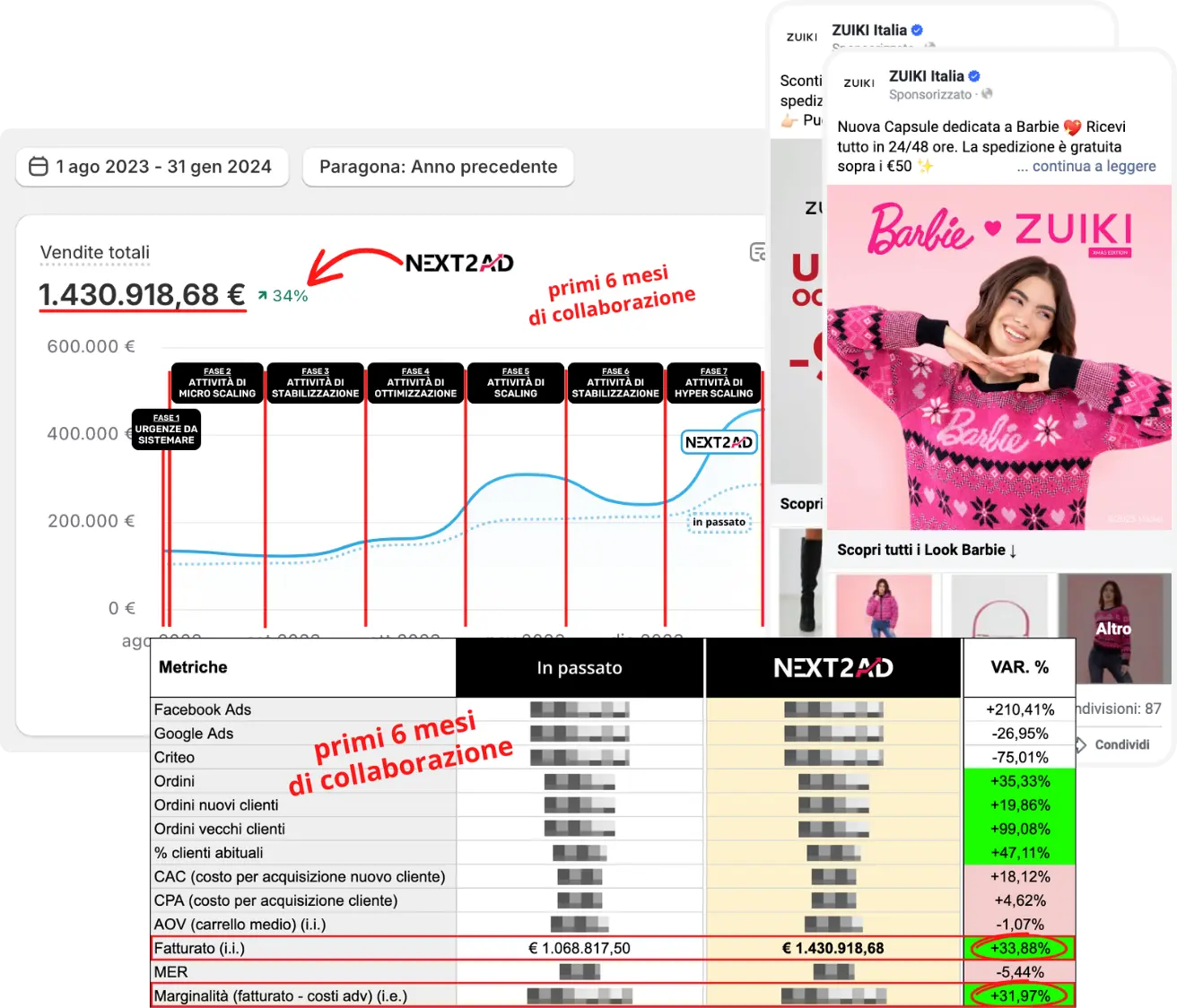 In solo 6 mesi: +34% di Fatturato e +32% di Marginalità attraverso strategie avanzate di advertising