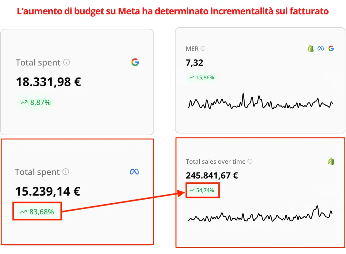 Queste oscillazioni (anche analizzate in modo relativamente semplice, senza modelli di media mix modeling avanzati) forniscono segnali sull’incrementalità reale dei canali che nessun report di piattaforma è in grado di offrire.