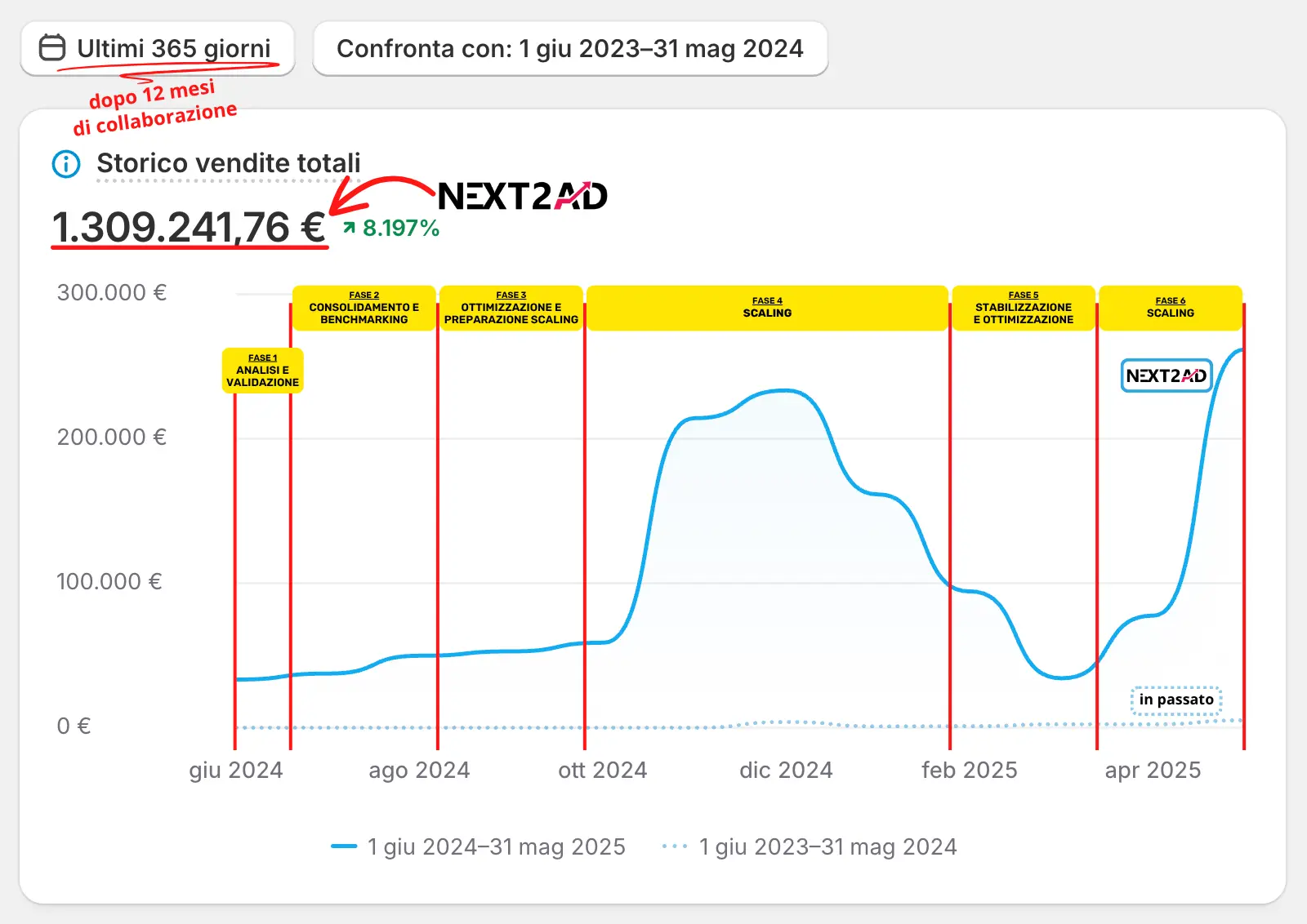 il fatturato generato in 12 mesi grazie a una gestione data-driven orientata alla scalabilità e profittabilità