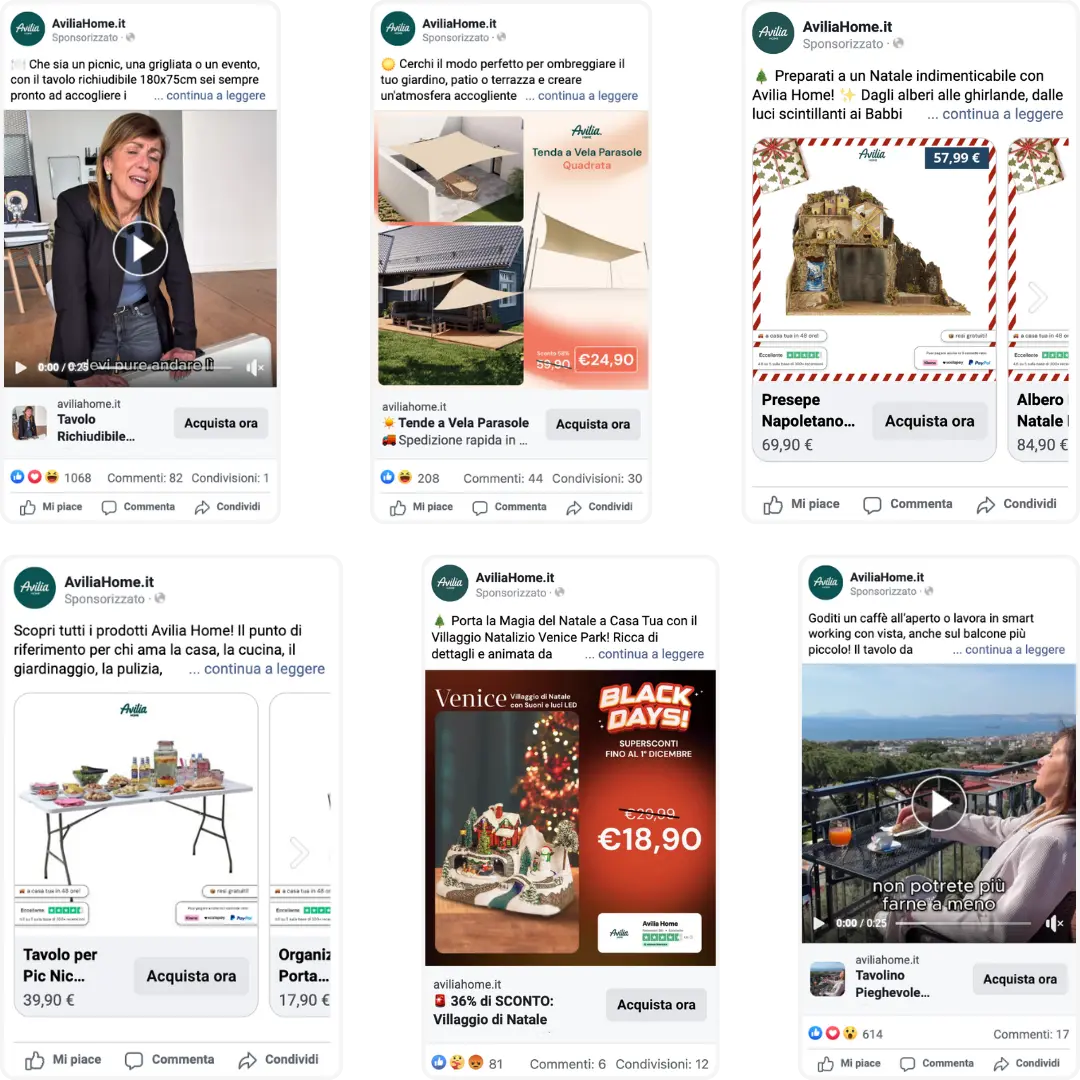 - Abbiamo utilizzato creatività statiche e video che valorizzassero i prodotti, integrando leve come reso facile, spedizione veloce e recensioni per aumentare la fiducia e spingere la conversione.