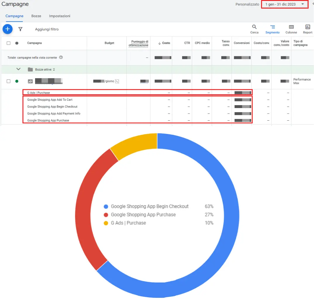 • Suddivisione della PMAX unica in più campagne migliorando la segmentazione del pubblico e la scalabilità delle vendite.