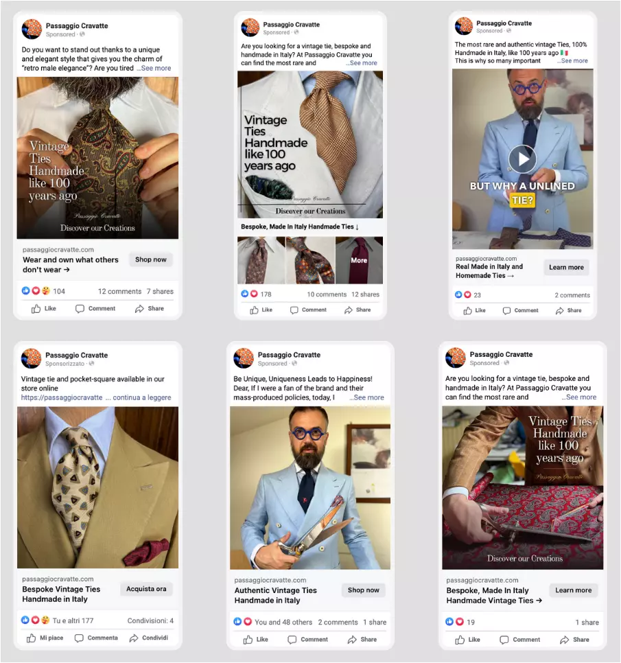 Passaggio Cravatte fin dalla sua nascita ha utilizzato Facebook Ads come fonte di traffico a pagamento. In passato veniva utilizzato parzialmente anche Google Ads ma con scarsi risultati. Avendo poco tempo a disposizione ci siamo fin da subito concentrati esclusivamente su Facebook Ads.