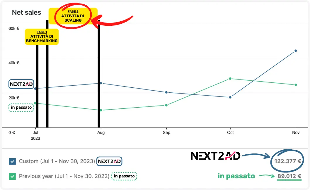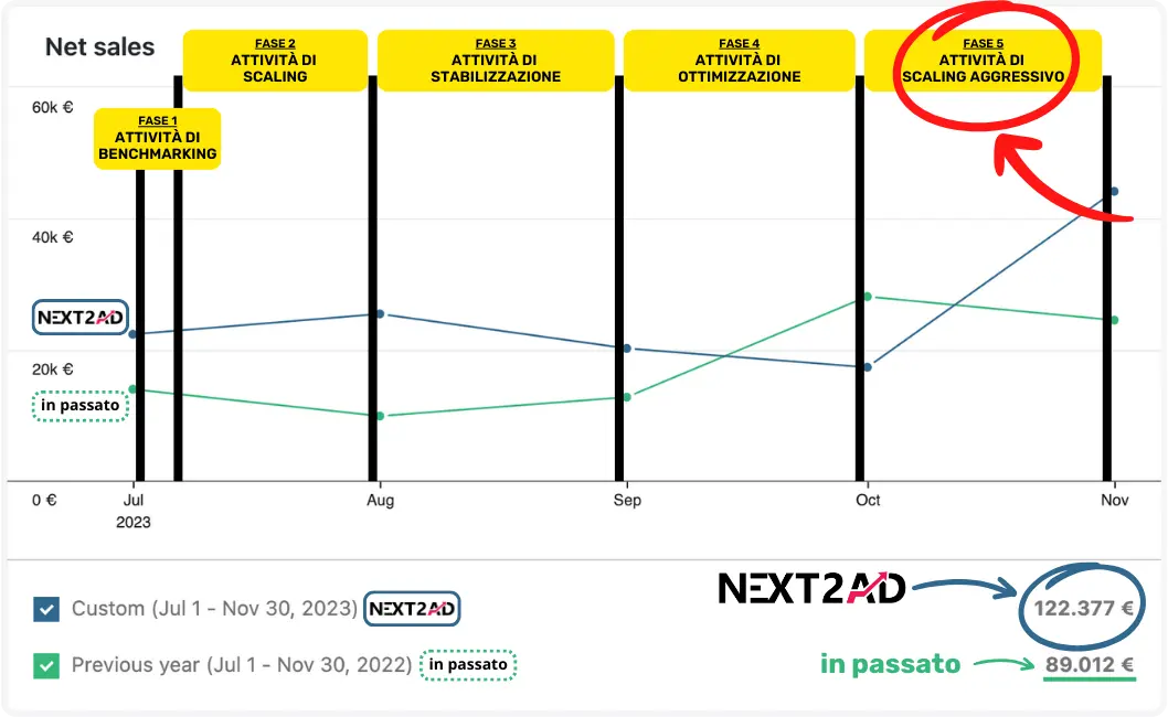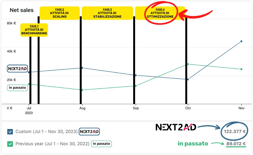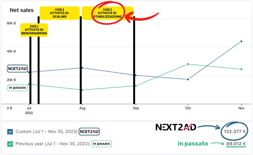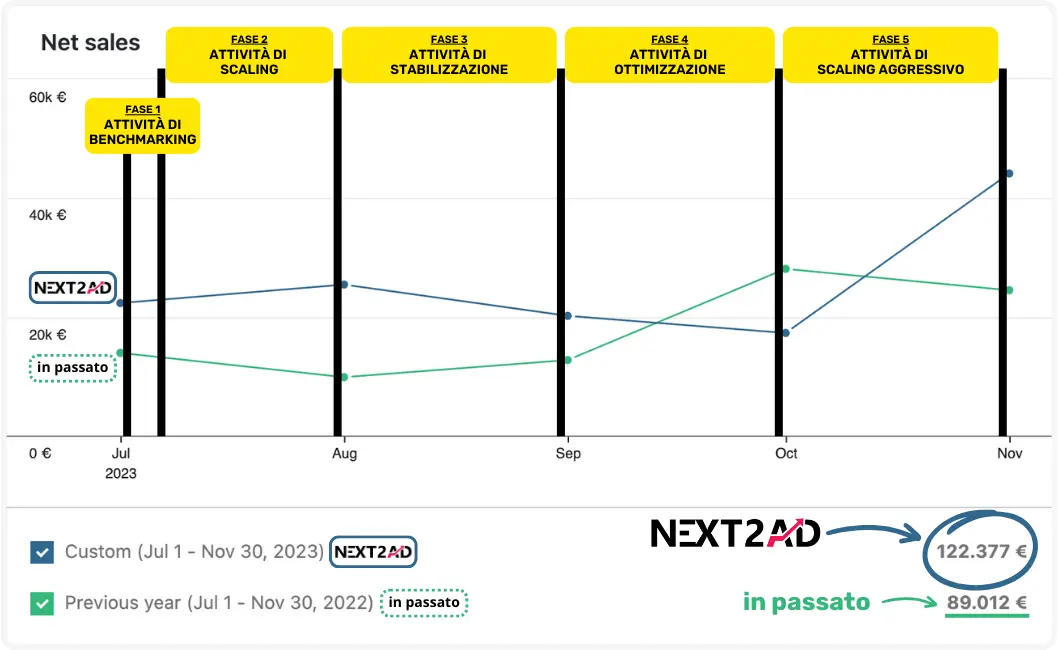 “Next2Ad è un’azienda precisa, puntale e capace. È riuscita a ridurre la spesa pubblicitaria mensile con dei profitti notevolmente superiori, addirittura un +70% di fatturato e +300% di marginalità in alcuni mesi dell’anno. Il team è sempre ben presente, professionale e concreto.”