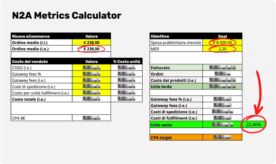 Utilizzando l’N2A Metrics Calculator, siamo stati in grado di ottenere una comprensione approfondita dei diversi elementi che contribuiscono ai costi operativi dell’eCommerce.