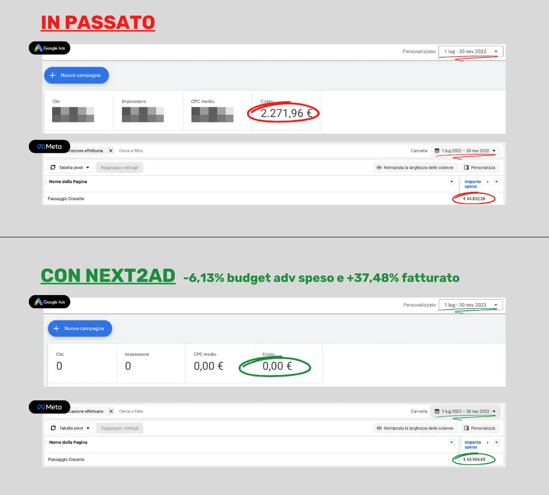 Il brand internazionale Passaggio Cravatte, in solo 5 mesi, ha ridotto il budget pubblicitario del -6%, aumentato il fatturato del +37% e incrementato la marginalità del +86%. Questo è stato possibile grazie alla gestione strategica e operativa di Next2Ad.