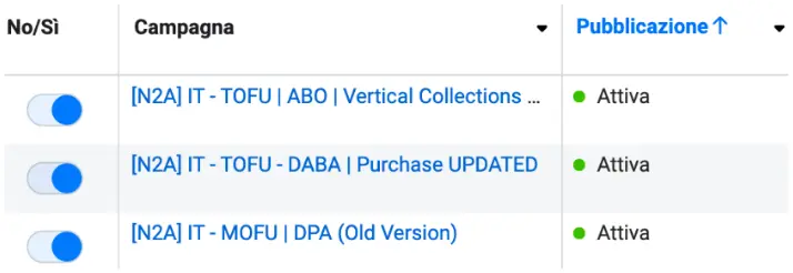 - Campagne inefficienti: sono stati stoppati gli adset con budget frammentato e obiettivi multipli (traffico, aggiunta al carrello, etc.), concentrandoci su campagne ad obiettivo acquisto per ottenere risultati efficaci e misurabili.