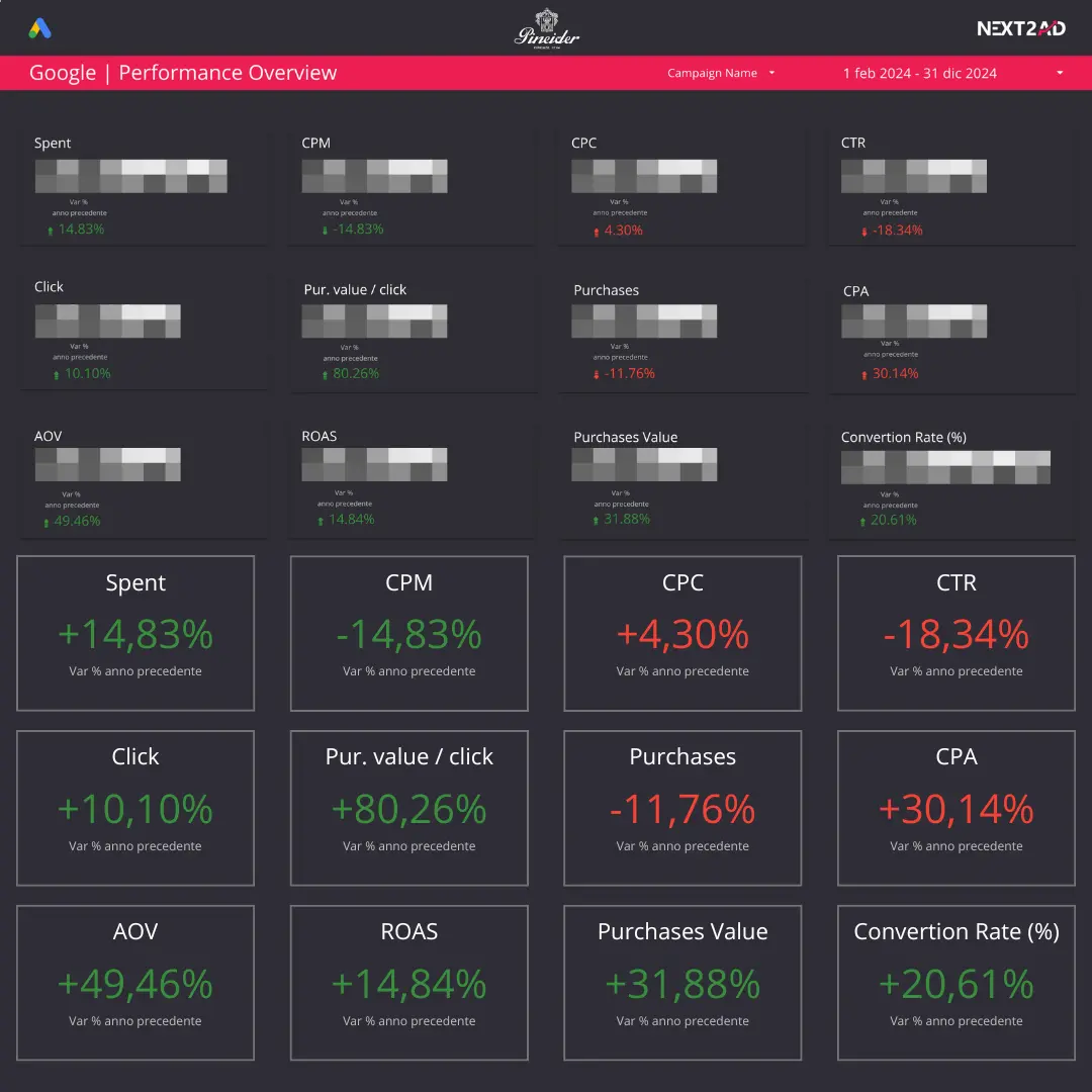 Il brand Pineider ha registrato un incremento del carrello medio del +10%, un aumento del fatturato del +40% e una crescita della marginalità del +43%. Questo è stato possibile grazie alla gestione strategica e operativa di Next2Ad.