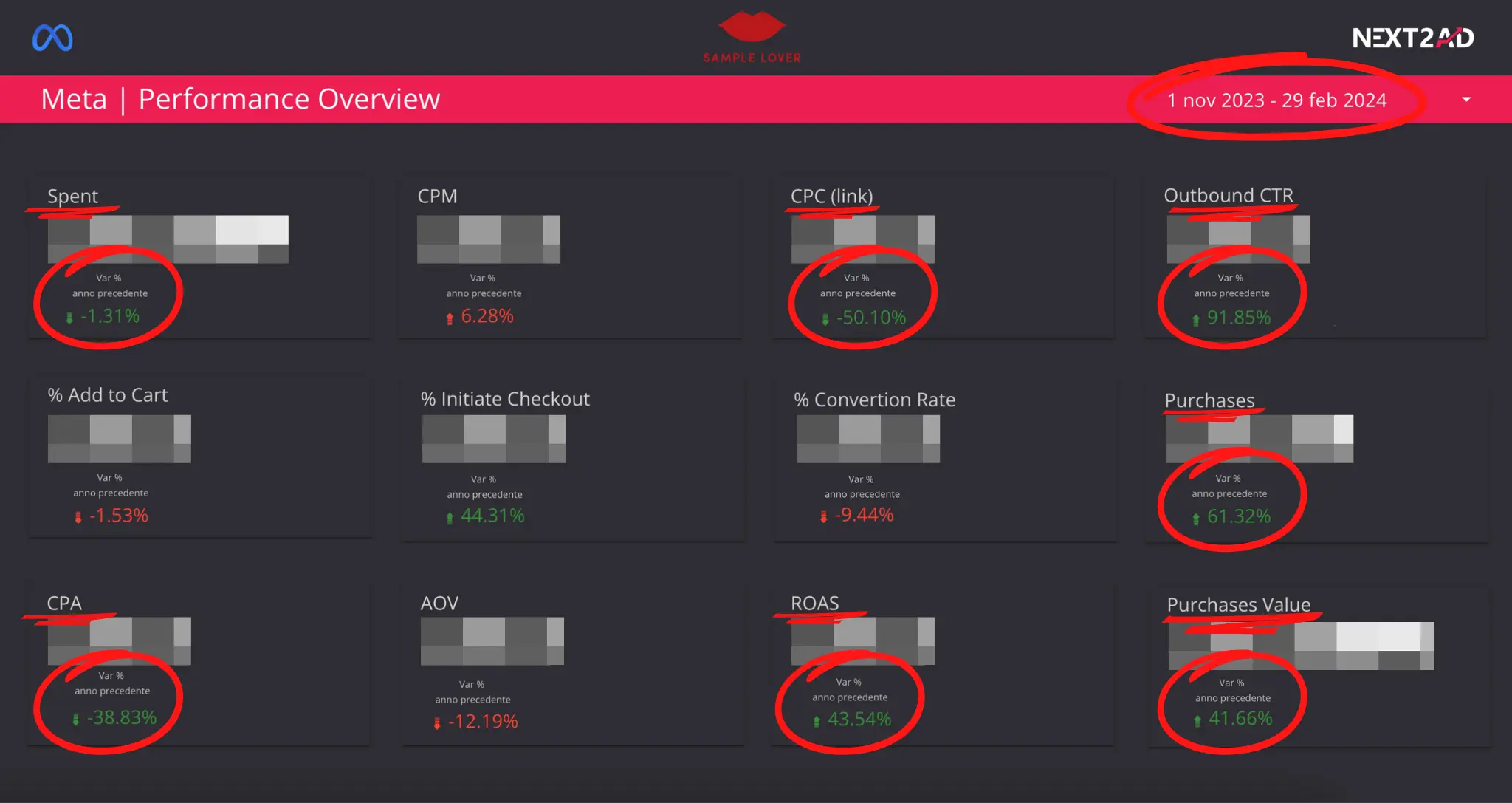 Il brand Sample Lover, in solo 4 mesi e con lo stesso budget adv, ha ridotto il costo per acquisizione cliente del -26%, aumentato il fatturato del +26% e incrementato la marginalità del +29%. Questo è stato possibile grazie alla gestione strategica e operativa di Next2Ad.