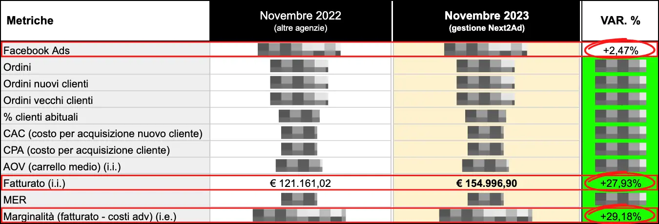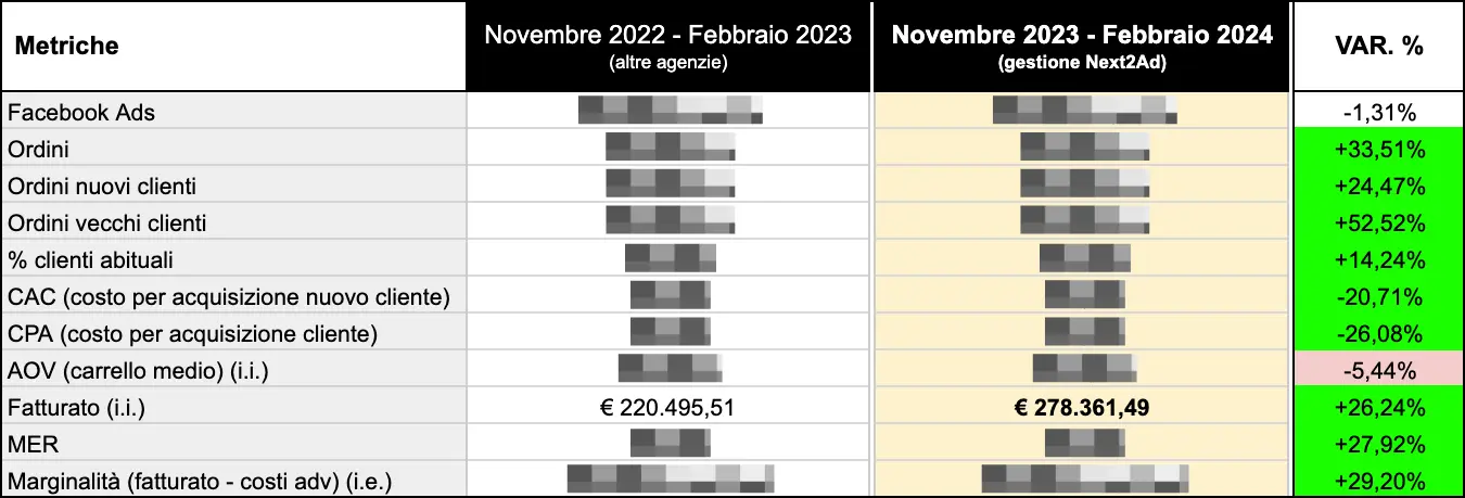 Riduzione del costo acquisizione cliente, aumento del fatturato e della marginalità con lo stesso budget adv.