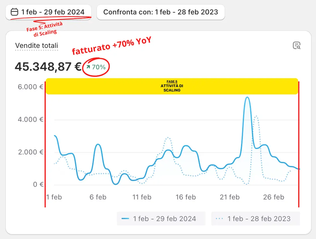 Grazie a tutte queste strategie siamo riusciti in questa fase a generare un +70% di fatturato rispetto all’anno precedente.
