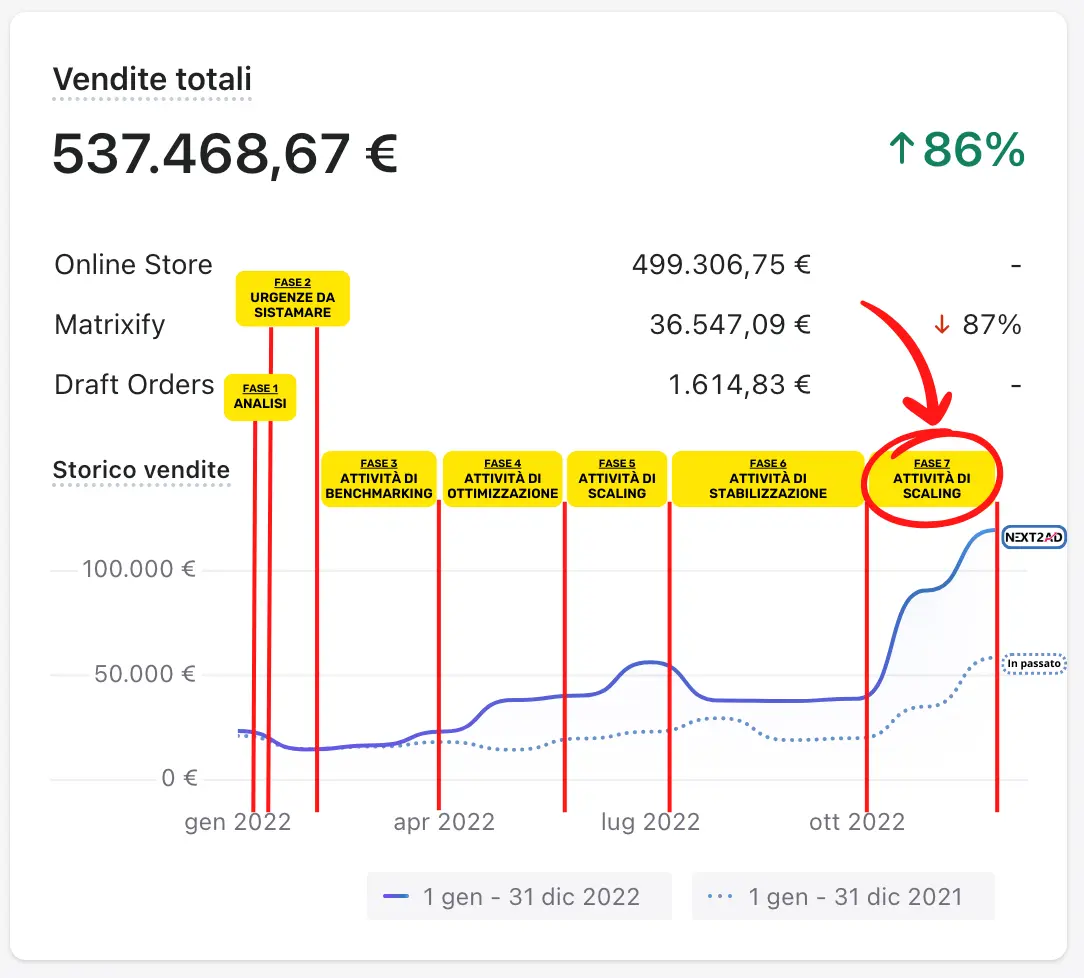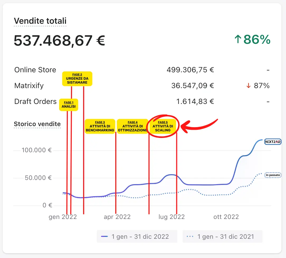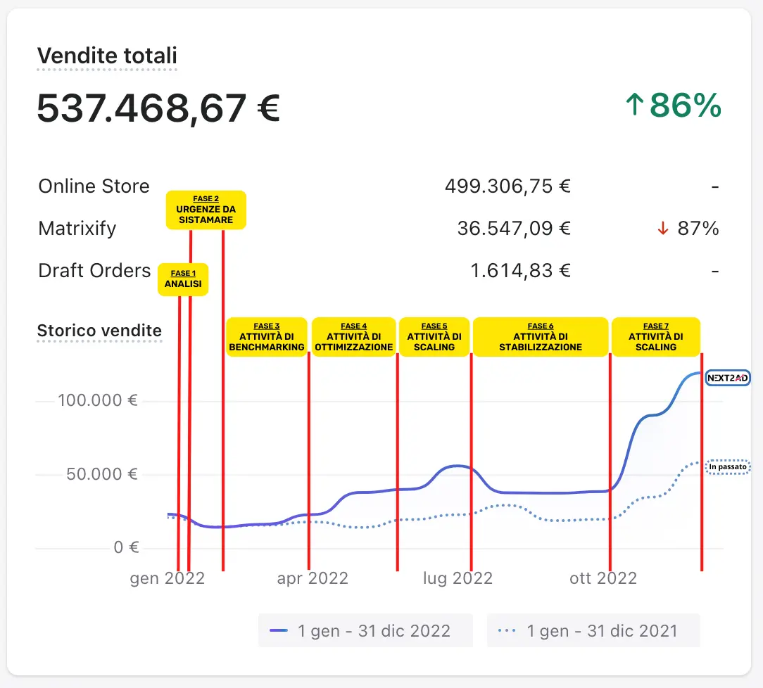 Ti mostriamo, in maniera pratica e dettagliata, come abbiamo operato in 12 mesi (Gennaio – Dicembre), da inizio collaborazione fino a massimizzare il suo budget marketing e scalare il suo fatturato e utile netto.