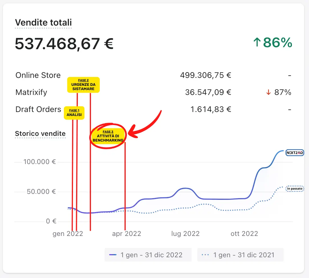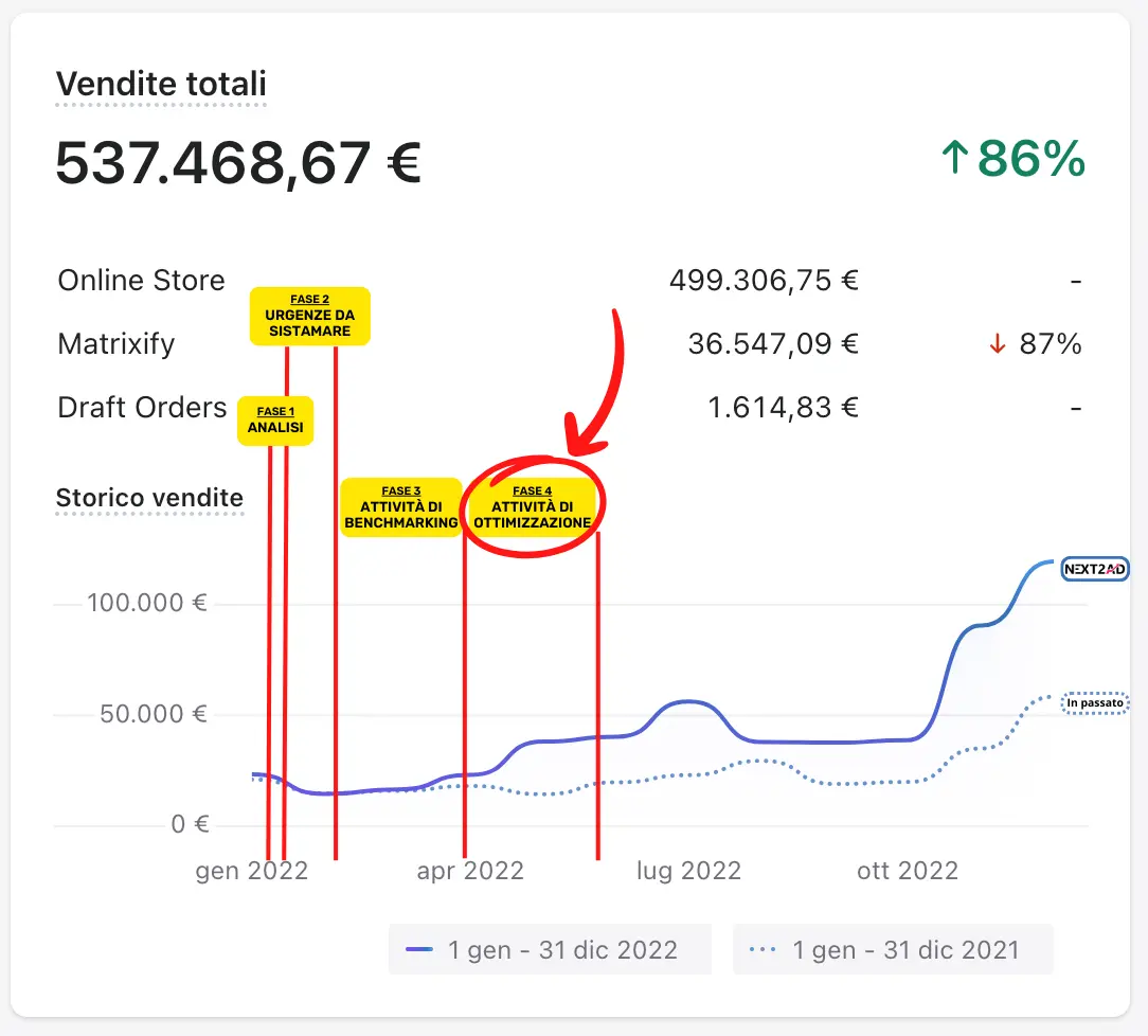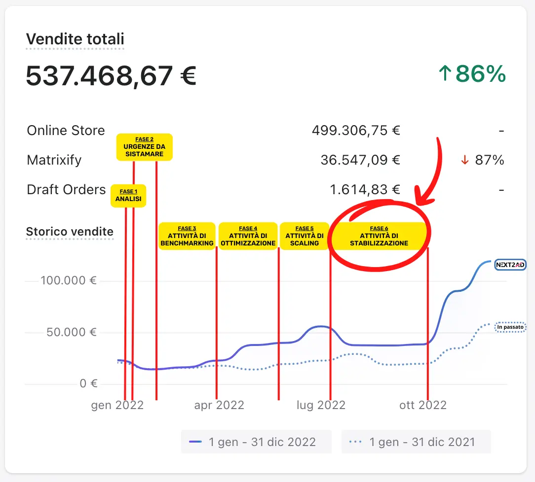 Ti mostriamo, in maniera pratica e dettagliata, come abbiamo operato in 12 mesi (Gennaio – Dicembre), da inizio collaborazione fino a massimizzare il suo budget marketing e scalare il suo fatturato e utile netto.