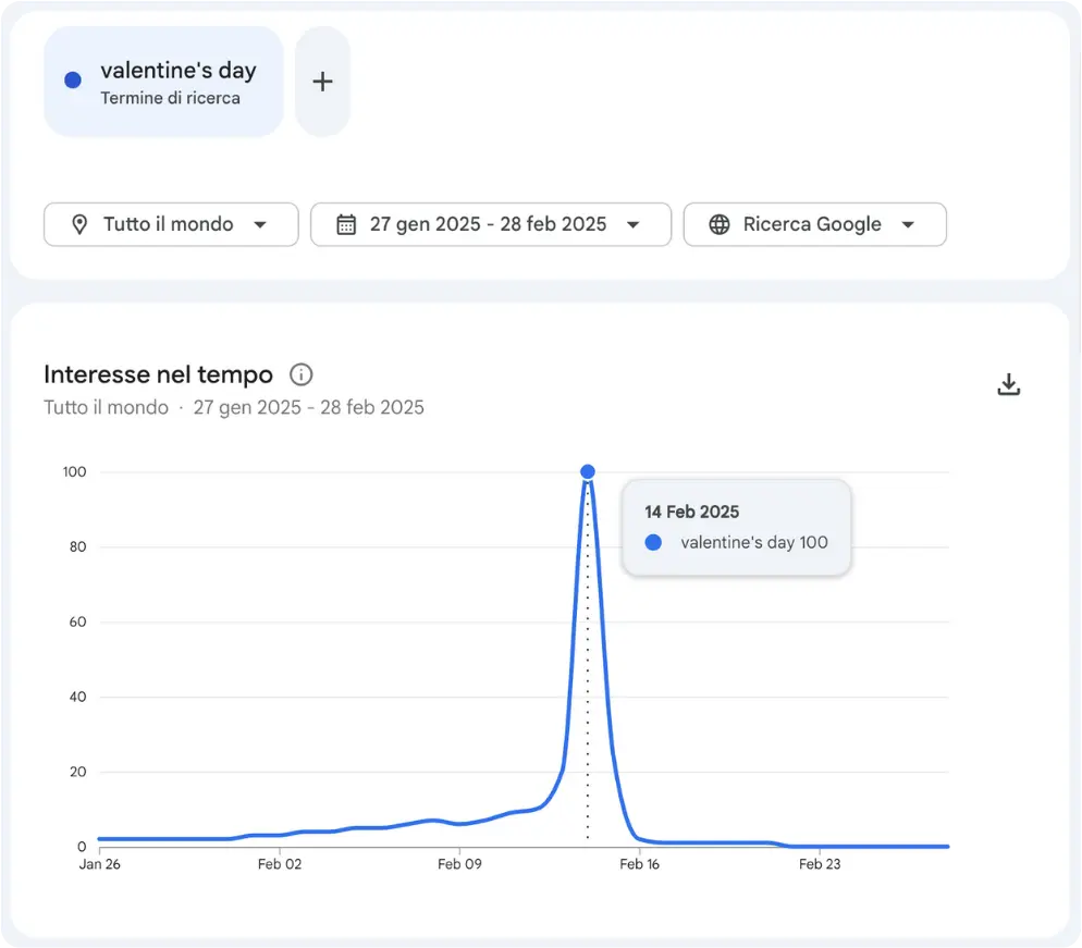 Questo rende San Valentino una finestra di circa 2–3 settimane, non un evento di un solo giorno.