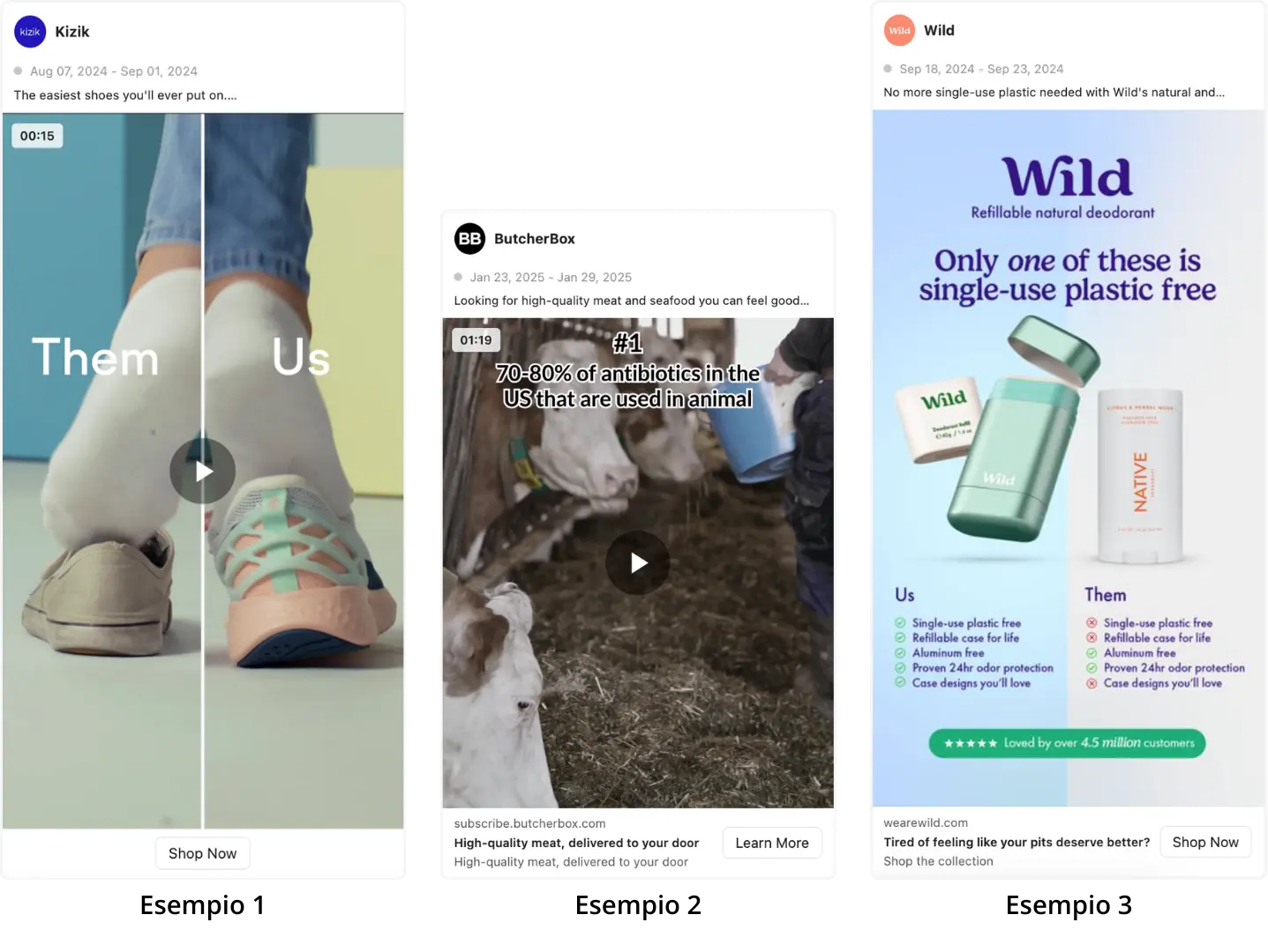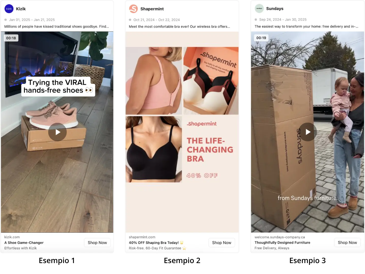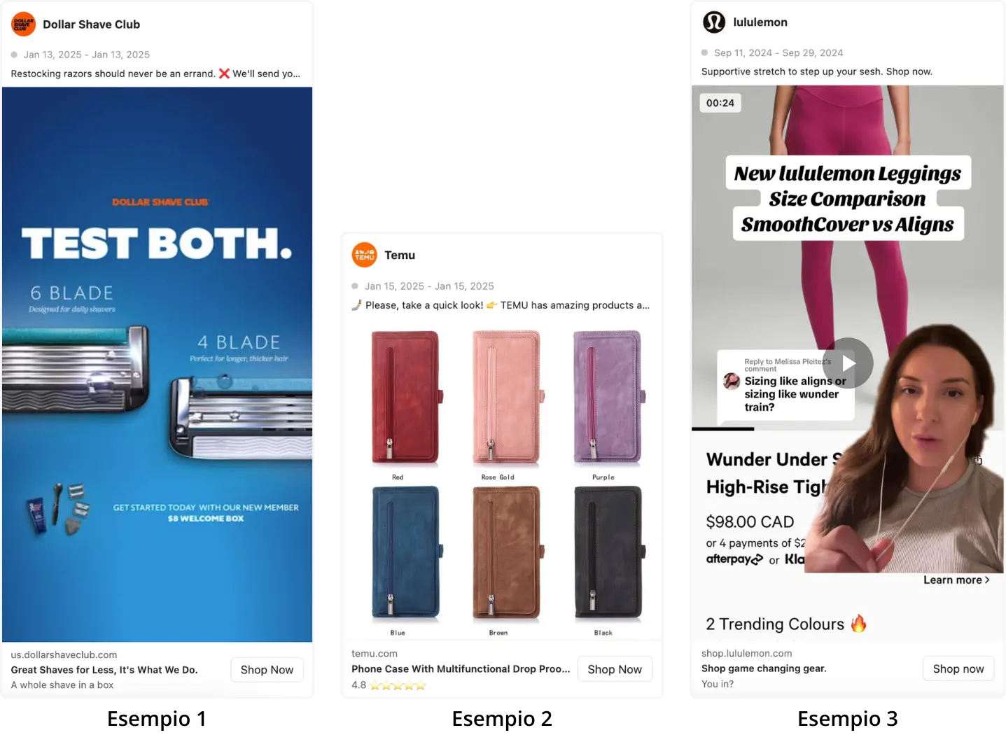 Esempi di applicazione in creatività immagine, carosello o video;