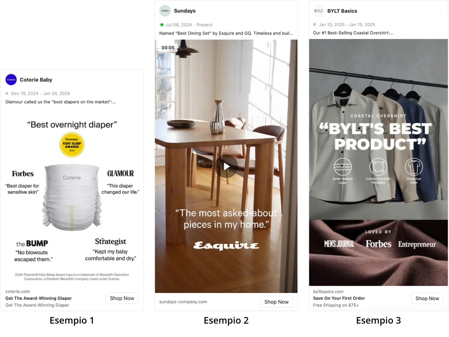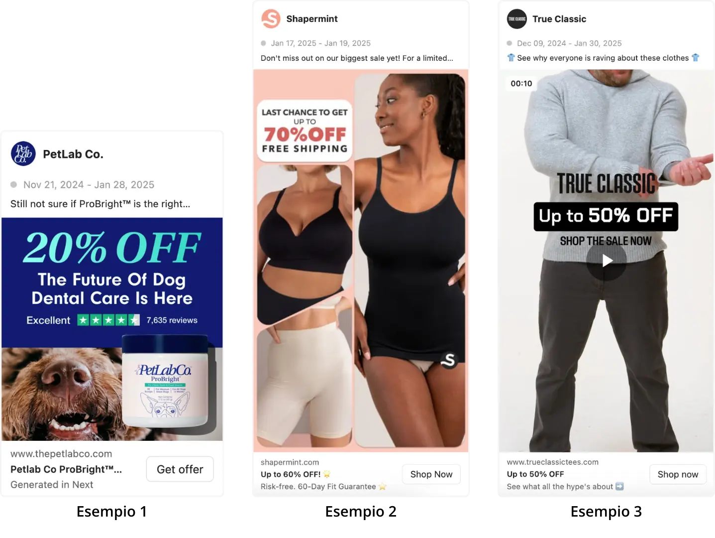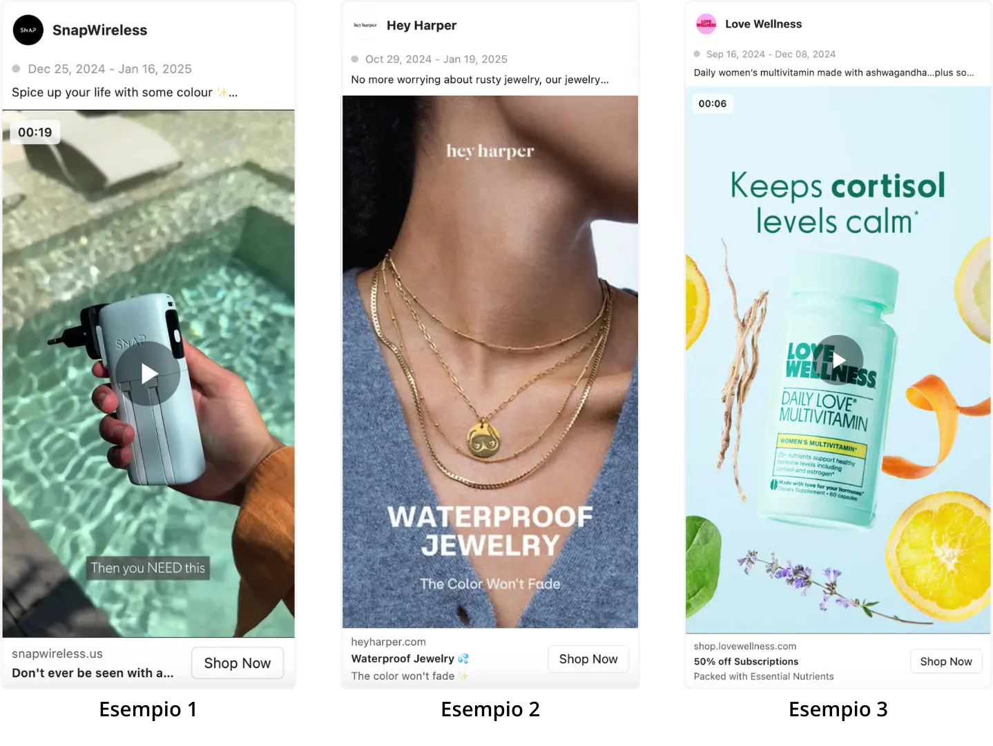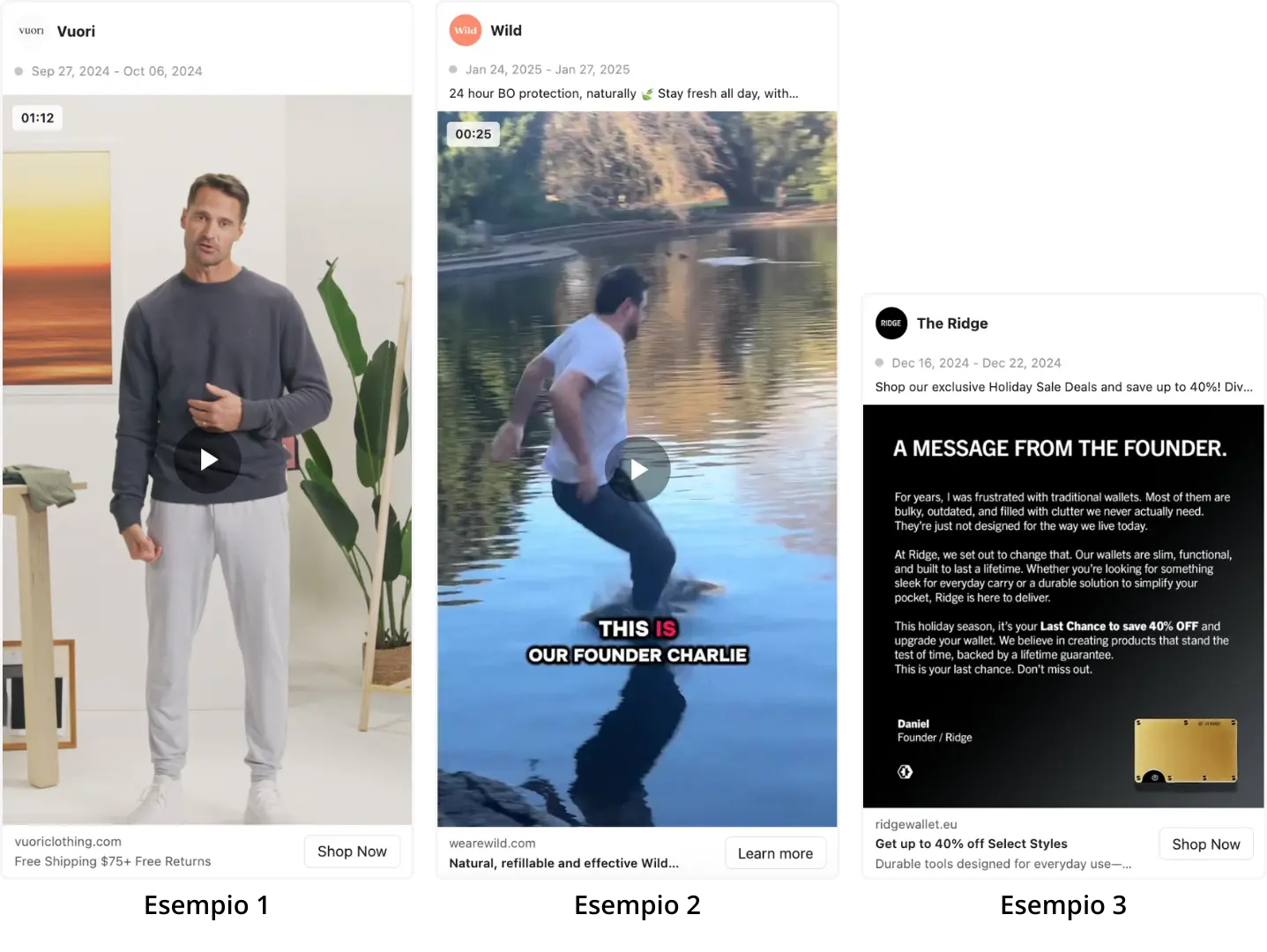 Esempi di applicazione in creatività immagine, carosello o video;