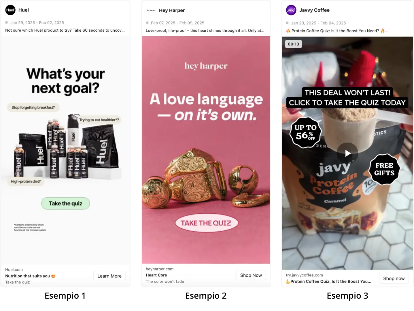 → Bassa frizione, alta curiosità → CTR spesso sopra la media.- Carosello con domande del quiz