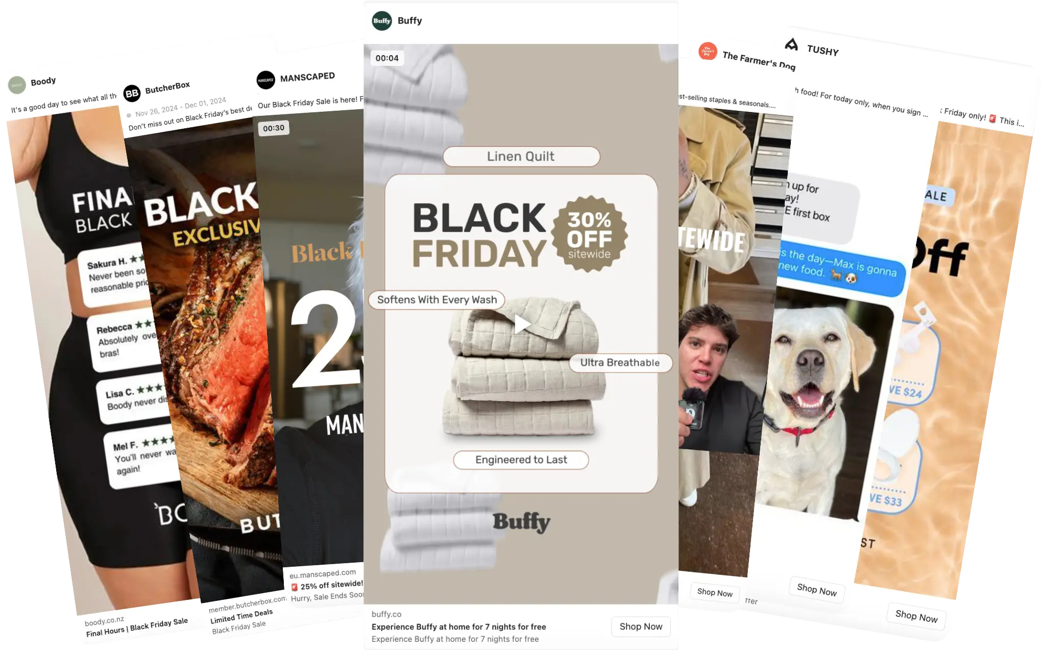 Scopri 450+ creatività Black Friday che hanno fatto scalare le vendite dei migliori brand eCommerce DTC