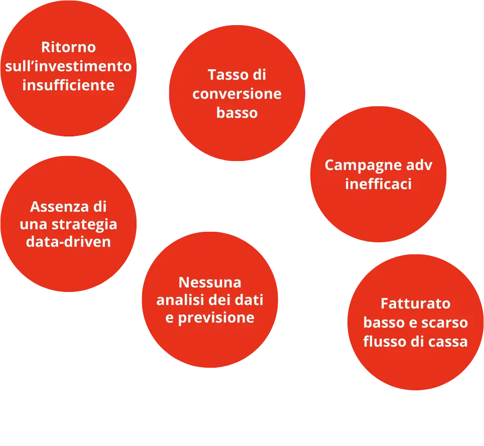 Il ritorno sull’investimento pubblicitario spesso è insufficiente, le campagne ADV non portano risultati, e il tasso di conversione è troppo basso rispetto al potenziale.