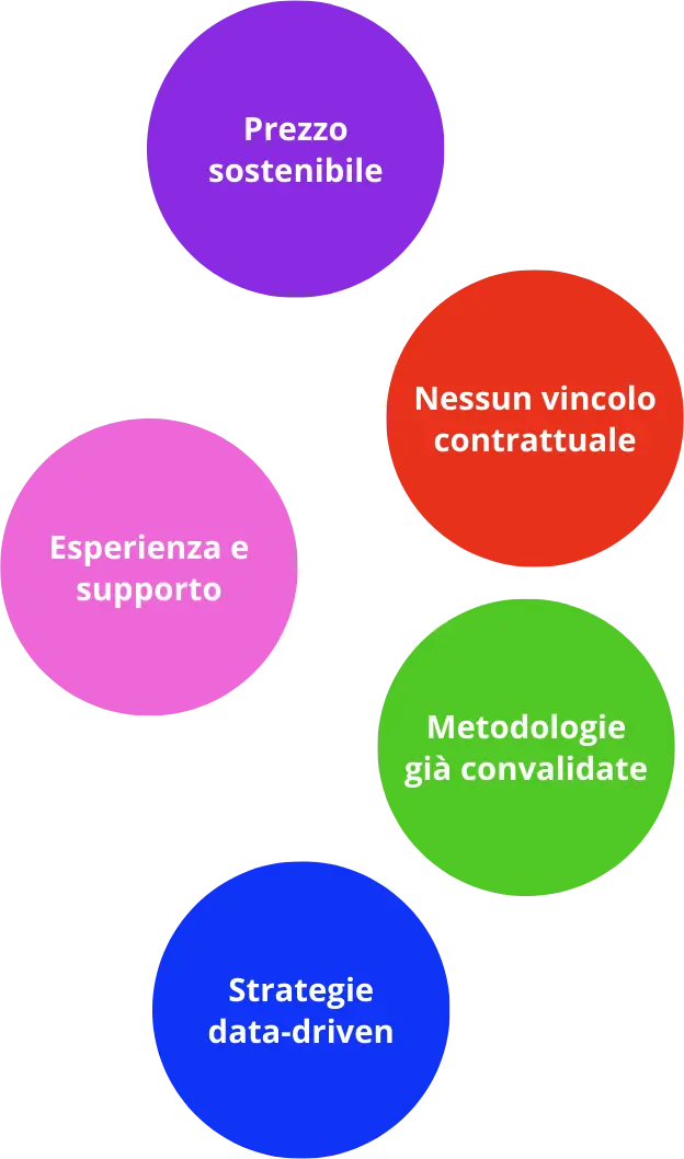 Non imponiamo alcun vincolo contrattuale: sei libero di continuare solo se vedi risultati concreti.
