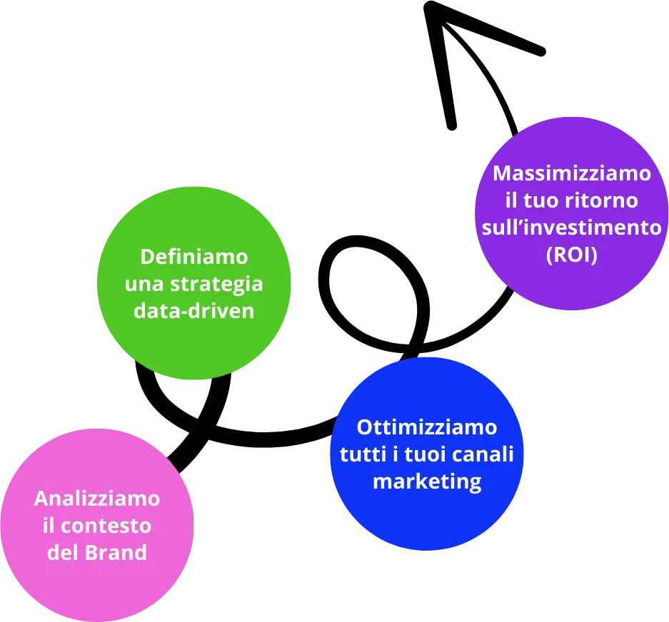 Non ci fermiamo alla strategia: ottimizziamo tutti i tuoi canali marketing, migliorando le performance di ogni attività, dall’acquisizione alla fidelizzazione.